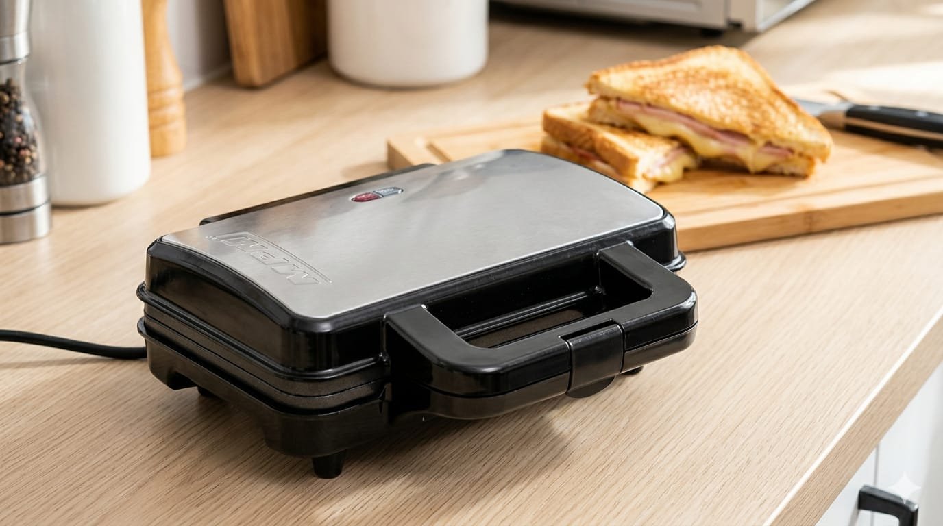 MPM Sandwich Toaster features non-stick plates and automatic temperature regulation for perfectly toasted sandwiches every time. Easy to use, safe, and quick heating makes it a must-have kitchen appliance.