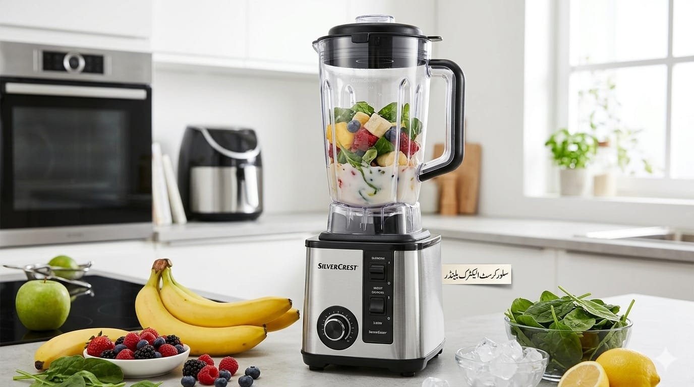 Silver Crest Electric Blender comes with a powerful motor and sharp stainless steel blades for efficient blending. Perfect for making smoothies, shakes, sauces, and grinding ingredients. Durable and easy to use for everyday kitchen needs.